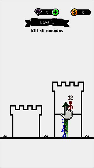 1、火柴人头顶有数字,数字比玩家大的对手难以战胜,击杀数字小的对手可吸收其数字。数字相同时,无武器角色打不过有武器角色。