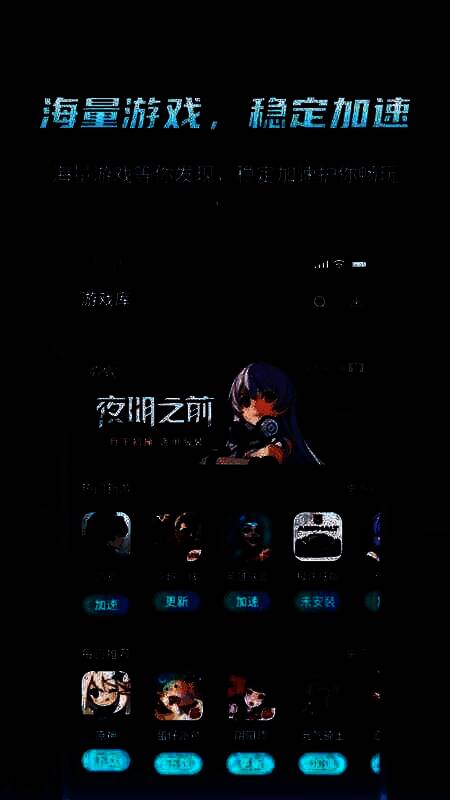 1、首先在本站下载并安装该软件,进入软件后默认进入加速页面,此页面软件会自动识别设备内可加速的游戏。