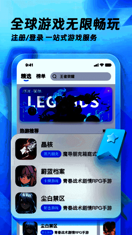 该app界面简洁,在精选游戏界面能看到热门的海内外手游。若没找到想玩的游戏,可在主界面搜索栏输入游戏名搜索,一键下载加速,解决手游登录异常、卡顿延迟高等网络问题。软件支持普通模式/高级模式切换,通过WIFI + 4G双通道智能切换,即使在地铁、公交等网络信号不稳定处,也能有流畅游戏体验。
