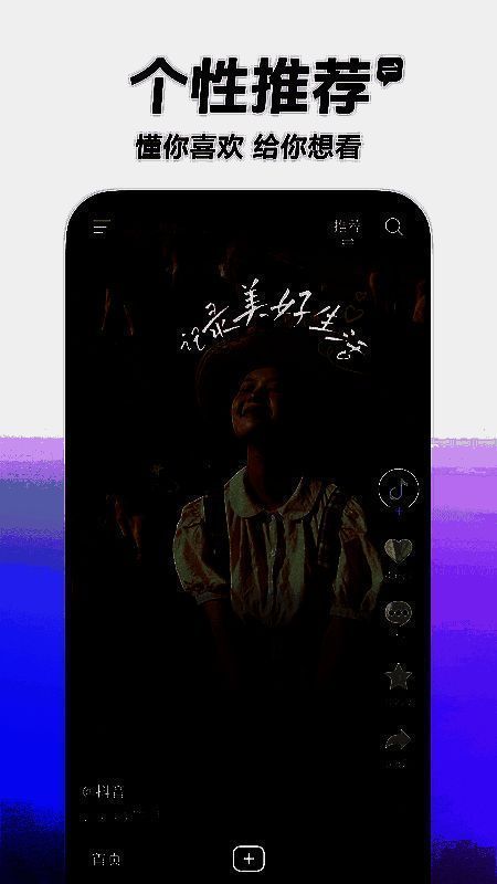 抖音能记录生活美好,可智能搭配音乐,一键生成视频。还有诸多原创特效、滤镜和场景切换功能,让视频秒变大片,轻松记录生活点滴。各行各业的人都在抖音,像原创音乐人、京剧演员、中科院教授、非遗传承人、烧烤摊主、快递小哥等,每个人的真实生活都得以呈现。