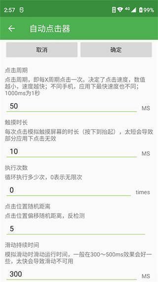 5. 可实时设置手机点击频率、手指按下时间、手指弹起时间(一般不用)等。