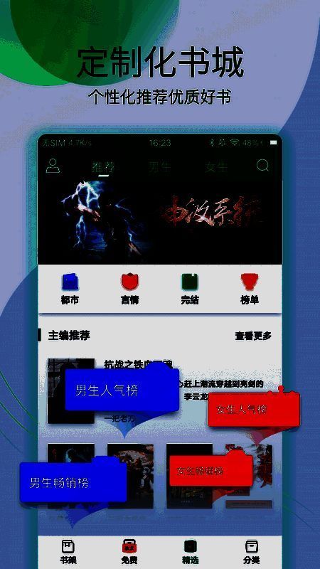 这款软件阅读功能和模式简单易上手,能轻松查看热门书单,自由阅读感兴趣的小说,还支持免费下载缓存,带来优质阅读体验。