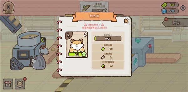 1. 你将拥有专属的仓鼠饼干厂,能够对设备进行升级,还可以招聘仓鼠员工。