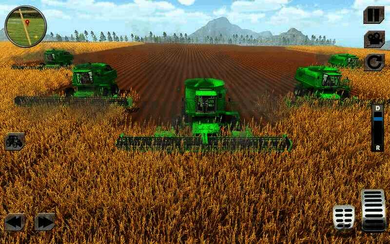 玩家通过触屏操作驾驶拖拉机,控制加速、刹车和转向,完成耕地、收割、运输等农业工作。