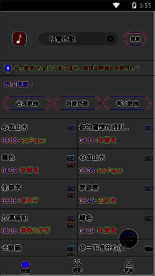 3. 通过搜索栏能找到喜欢类型的歌曲,搜索方式快捷。