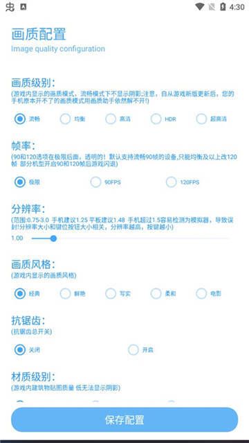 此外,该工具支持自定义图像质量设置,玩家可根据设备性能和个人偏好灵活调整各项参数,找到画质与性能间的最佳平衡。