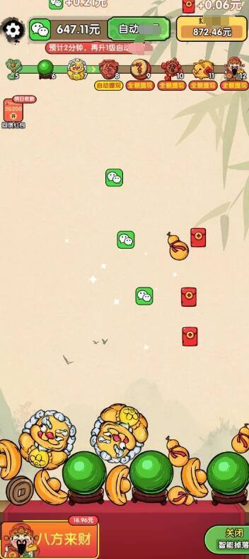 从最初的几个级别开始,玩家能轻松将物品升级到4 - 8级,每次升级可提取0.1元现金。