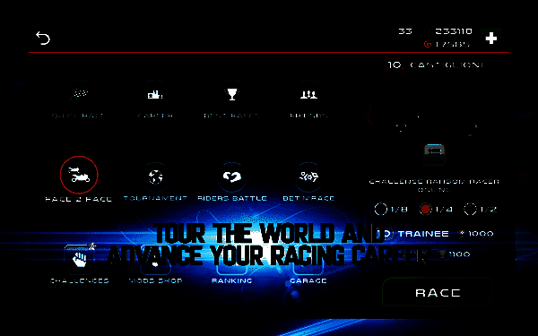 此游戏赛道环境真实,可自由改装摩托车提升性能,还整合了加速器、防护面具等道具,助玩家在游戏中占优势,畅享精彩赛车内容。