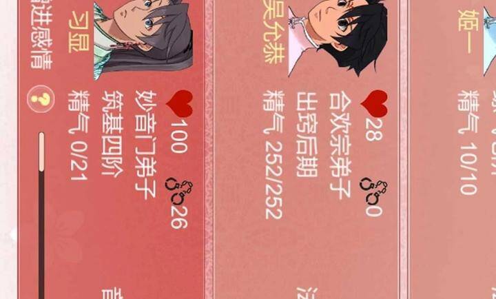 仔细查看角色履历,确保他们没有心上人、道侣,且未被异性救过,男性好感度最好控制在60以下(不宜超过70)。若角色已有心上人或道侣,可考虑除掉对方,但需等该角色“放下感情”后,再为其介绍新对象。此外,修为越高的夫妻生育概率越低,建议优先选择低阶修士。