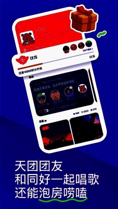1. 超有趣的弹幕合唱,这是独特的社交唱歌模式,一开嗓便嗨唱不停。为朋友作品发送全屏歌唱弹幕,是森友间超上瘾的互动玩法,还能用多位朋友的弹幕组成超惊艳的合唱作品。