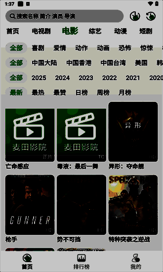 不同类型的影视分类明确,如电视剧、电影、综艺节目等。