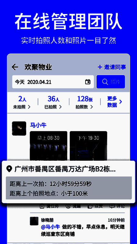 1. 照片可自动同步到团队,经理能在线管理工作团队。