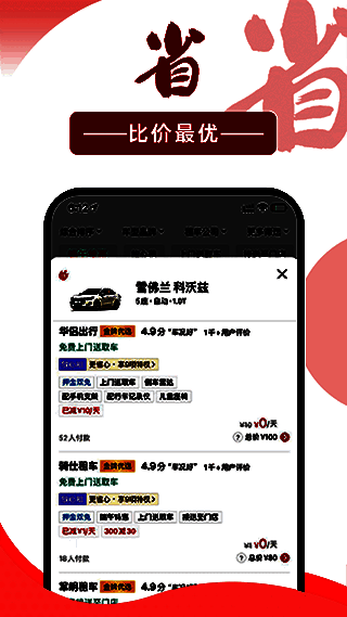 3. 超低价优势明显:租车服务会在多个租车公司平台对比,提供众多租车品牌供选,让用户享受低价安全出行。
