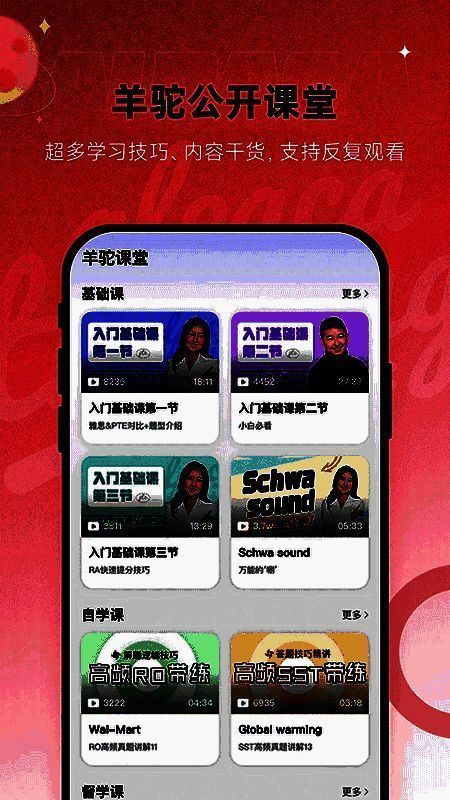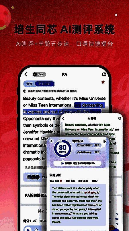PTE羊驼集成人工智能口语评估、数据库更新、练习签到与互动社区,紧跟考场趋势和新题更新,适用于PTE、雅思和托福考生口语阅读练习。有大量题料助考生巩固题型规则、改进不足,适用于笔试和口语测试。
