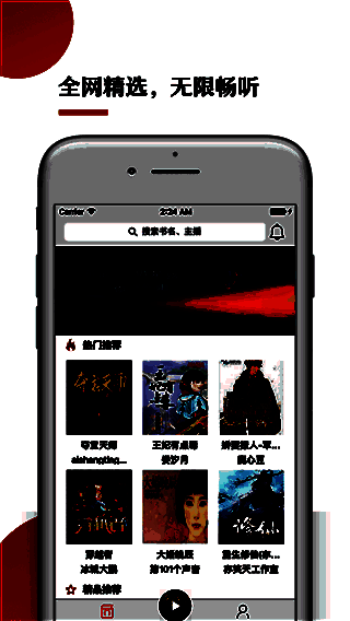 1、首先下载并安装月亮听书app。进入软件首页后,这里有很多热门有声小说推荐,可选择一本感兴趣的书籍。