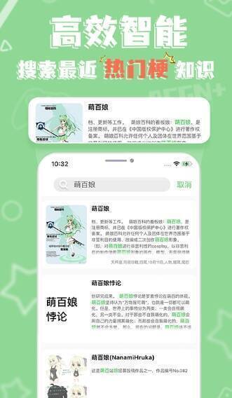 1. 快速搜索:优化的搜索算法与简洁界面设计,使用户能迅速找到所需信息,无论是特定ACG作品、人物、事件还是流行词汇,都能轻松搜索。