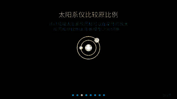 3、太阳系仪比较原比例:点击太阳系仪图标,可在星体放大视图和原比例太阳系模型间切换。