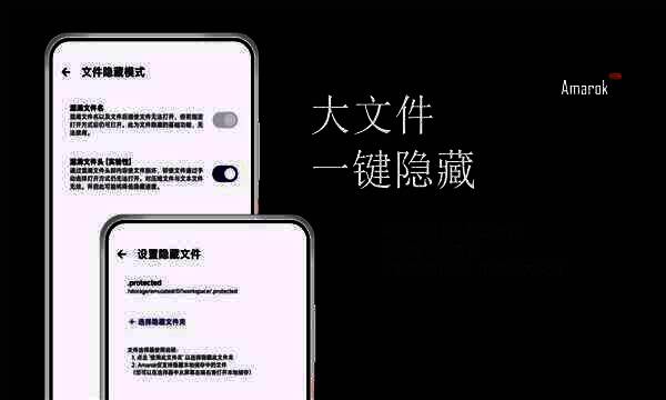 Amarok隐藏神器带来全新的文件隐藏功能,通过混淆文件名和签名可轻松隐藏应用和文件,还支持一键隐藏多个不同文件夹,为手机使用带来便利。