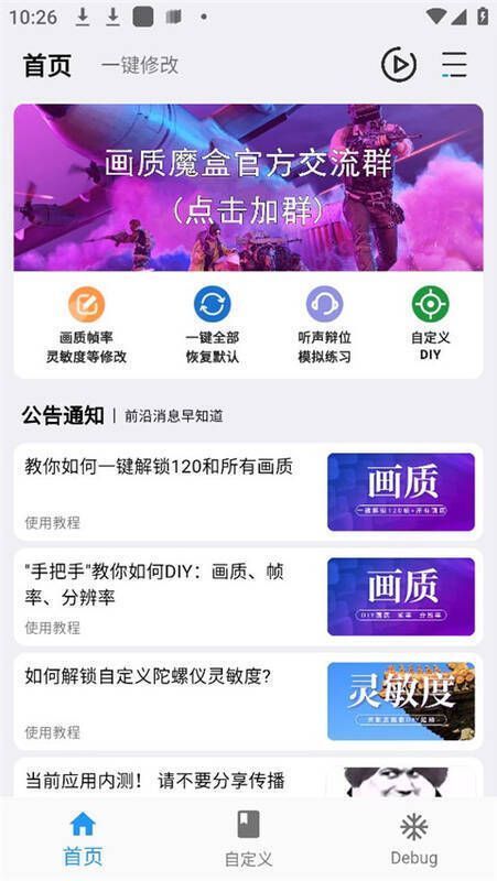 画质魔盒是一款极为出色的吃鸡游戏画质修改软件。用户能借助它提升游戏画面质量,涵盖帧率、风格、品质、分辨率以及渲染距离等参数,让游戏过程丝滑流畅,还能了解游戏技巧,增添游戏惊喜。而且所有功能免费,让吃鸡玩家爱不释手,可一键解锁最高画质和提升运行流畅度。