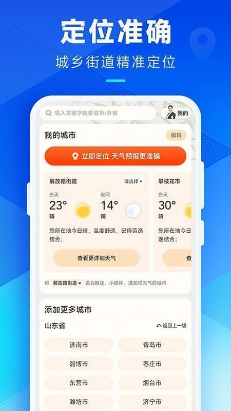 4、推荐的精密天气预报服务可以让用户获取更准确的城市天气数据信息,并显示相应的天气信息。