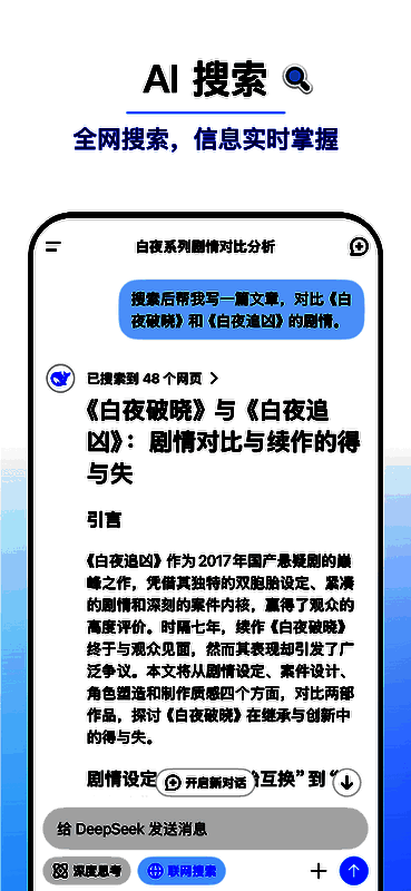 2. 深度思考与在线搜索结合:既有深度思考能力,又能在线实时搜索最新信息,提供全面答案。