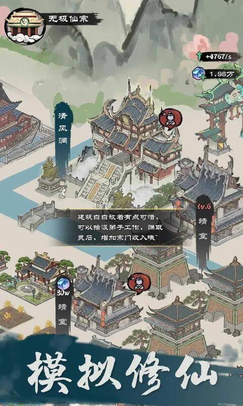 3、门派管理机制:创建并发展专属仙门,吸引弟子加入,扩大自身势力。