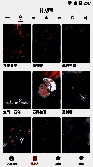 2、切换到排期表界面,可查看动漫作品的更新时间,第一时间获取最新内容。