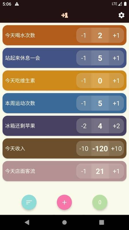 4、可使用正负计数、自定义名称,同时记录多个新项目。