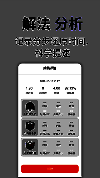 答:在计时模式下,完成还原后,App会自动保存还原记录。用户可在计时模式页面找到“历史记录”按钮,点击即可查看所有还原记录,包括时间、步数等。