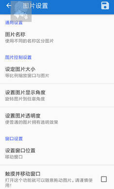 在软件里,可自定义图片大小和位置,还能同时显示多张图片。对于暂不显示的图片,能将窗口隐藏为管理列表中的透明背景。透明图片放置后不影响正常触摸操作。