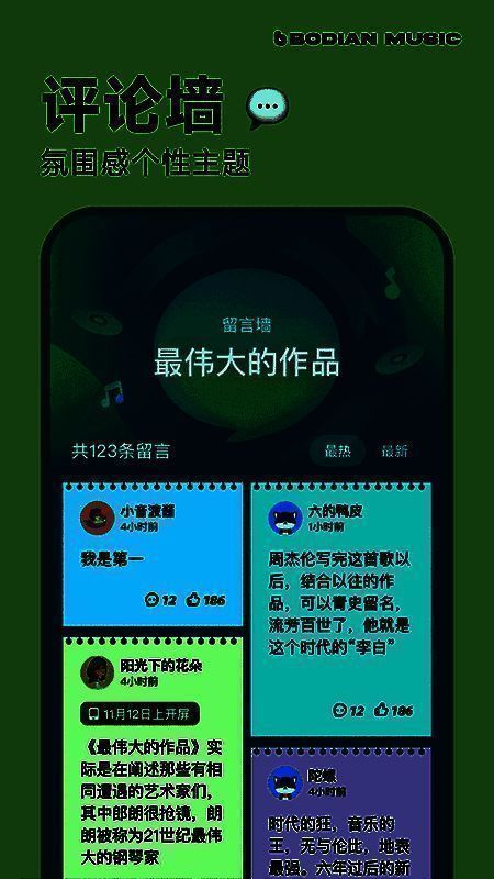 3、每首歌曲都设有活跃的评论区,用户听完后可表达自身感受,所有评论皆是真实听者的心声记录。