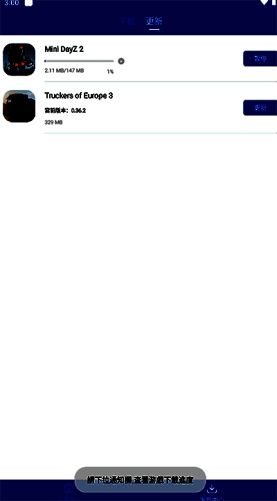 3、能够对下载的游戏APK文件进行管理,可在此处进行删除和更新操作。