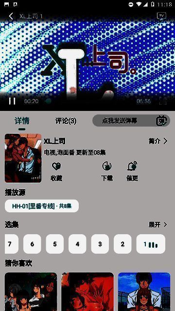 3、选择感兴趣的动漫作品进入详情页,可切换播放源、选集,还能收藏、下载、催更。