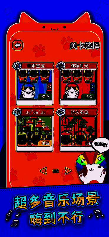 4. 玩家可以挑选不同的猫咪,打造属于自己的风格,通过改变猫咪外观,创造独特的音乐风格。