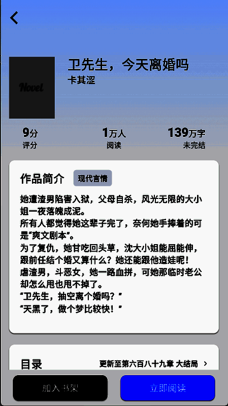 加入书架的操作也很简单,点开喜欢的小说进入详情页,点击“加入书架”,回到首页就能在“书架”页面查看。软件评价颇高,提供免费热门小说资源,不断更新,还会精准推荐、详细分类,让用户告别书荒。