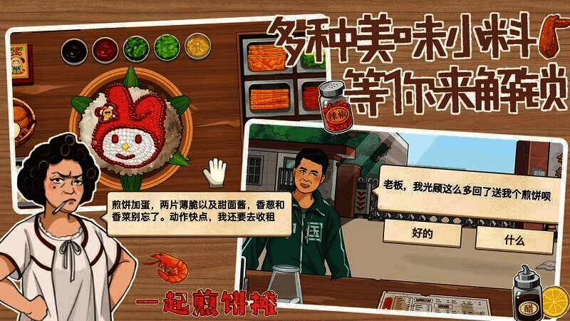 通过持续经营和扩展,玩家将逐步解锁更多高级食材、设备以及外观装饰,打造最受欢迎的煎饼摊。