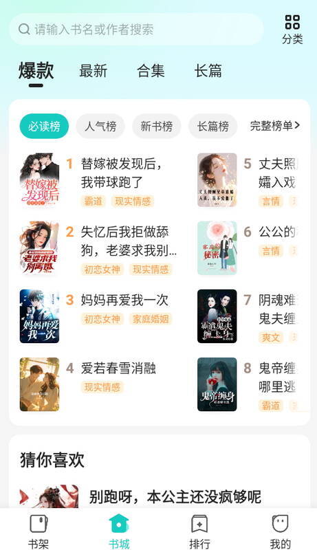 2. 进入后点击首页底部的“书城”,再点击右上角“分类”。