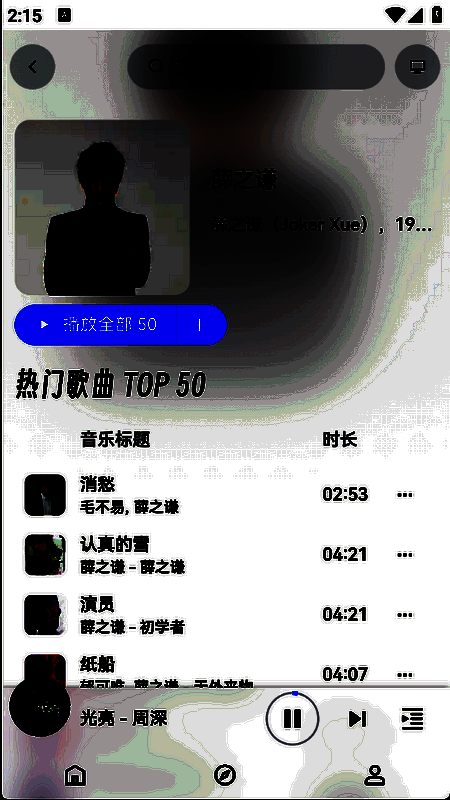 3、作为小众手机音乐播放器,整合多个音乐平台资源,可直接在线搜索并播放。