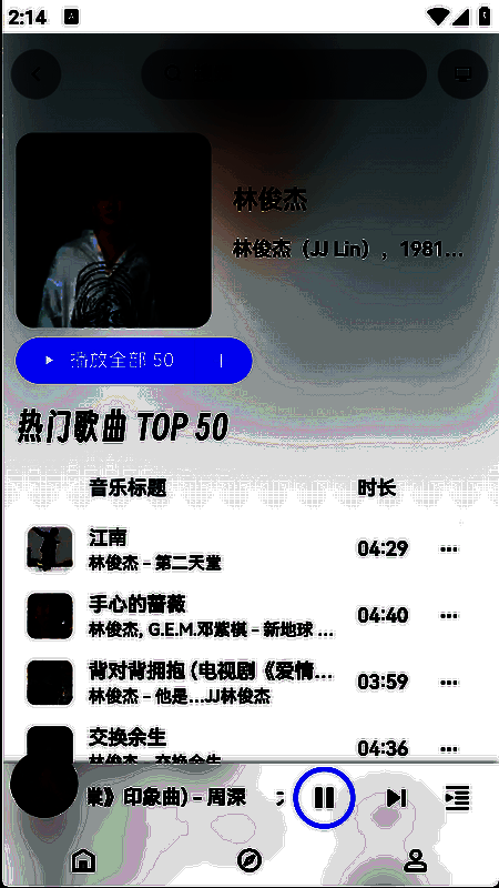 4、界面简洁直观,优质音乐一目了然,点击即可播放,无任何限制。