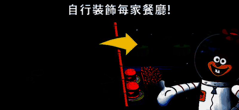 游戏可打卡地标性菠萝建筑,呈现动漫中熟悉的海底场景。能让海底世界众人品尝多种口味汉堡及其他美食。