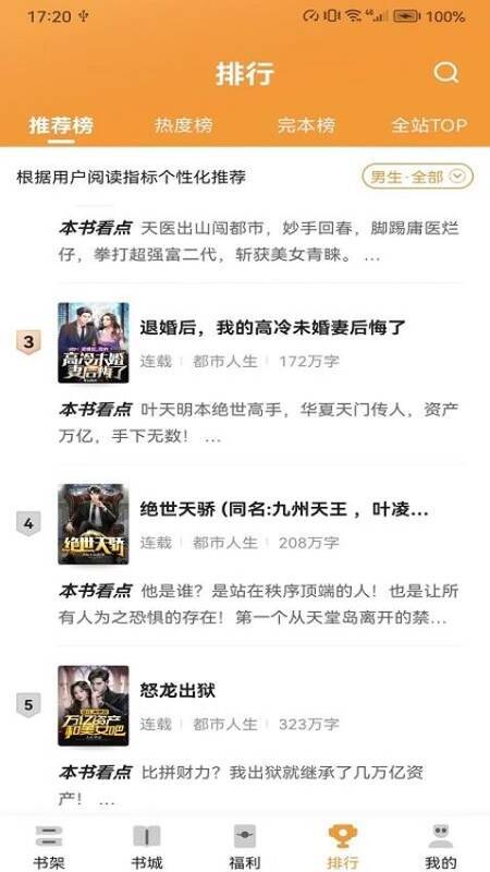4. 有各类小说列表,助用户快速找到热门小说,满足阅读需求。