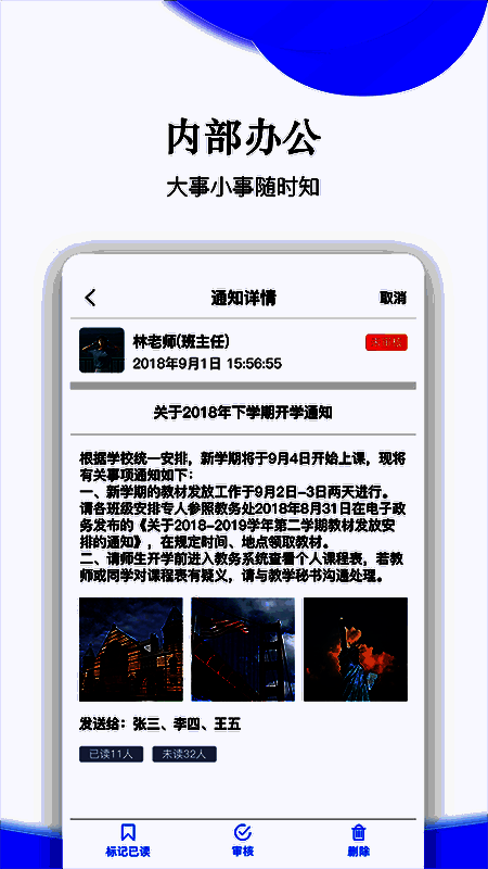 4、用户可通过该软件一键下发各种通知,教师能及时查看。