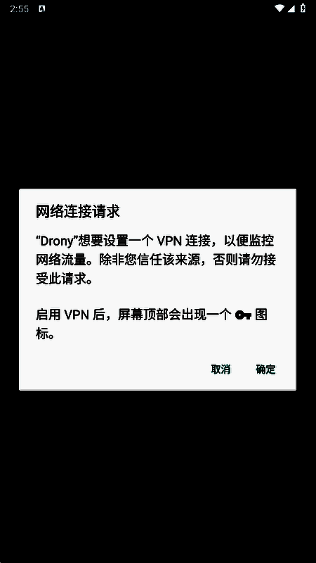 6、左滑到log标签页,点击底部的off按钮,启用Drony,同时要确保Drony进程在后台不被关闭。