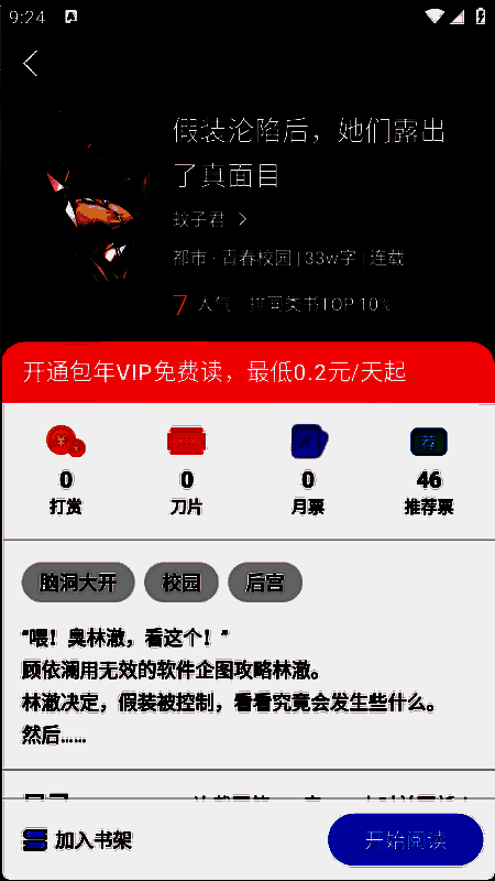 5、点开想看的小说进入详情页,点击“开始阅读”。