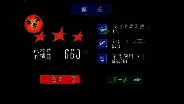 6、关卡通过后,会显示所花费的金额以及获得星星数量,点击下一步进入下一个关卡。