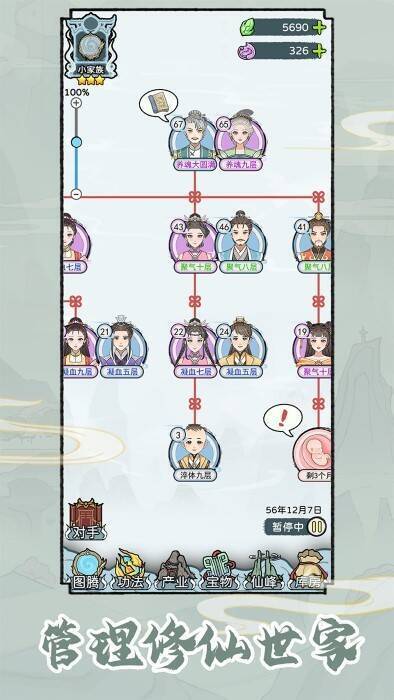 游戏中玩家可自主决定家族发展方向,不管是专注修仙还是打造商业帝国,都能靠灵活策略让家族繁荣。家族成员经历生老病死,新成员不断加入,玩家需合理规划资源与传承,让家族成为修仙世界传奇。