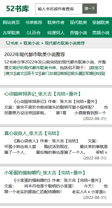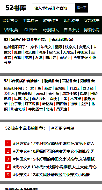 1、在52书库上方有搜索栏,输入书名或作者均可查询。