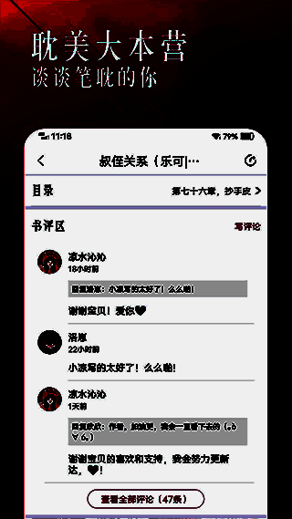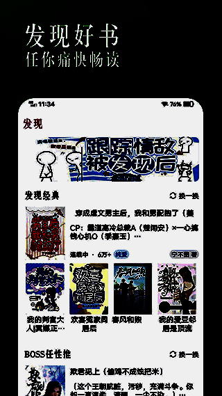 该软件拥有大量署名签约作品,是众多作者最新小说的首发平台。具备专业的指导、培训、跟进和推广服务,全站无广告和弹窗,让读者专注阅读。此外,资深编辑团队汇聚了大量优质和超人气小说。