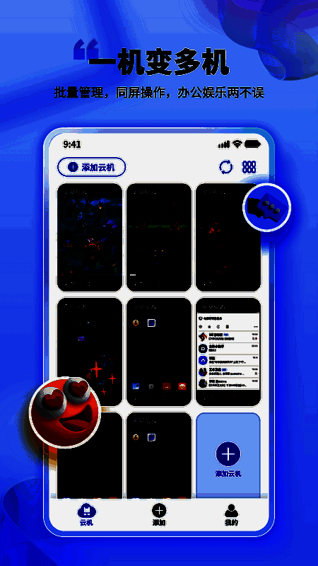 1. 为专属玩家提供必备游戏助手,一键即可在线操作云手机。