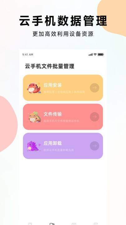 5. 云手机数据管理:云手机数据使用时不占本地设备存储空间,有效减轻本地存储压力,提升整体设备性能,让用户更高效利用设备资源。